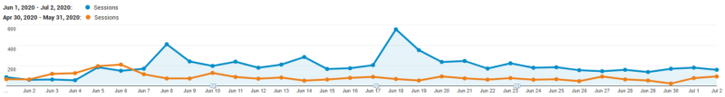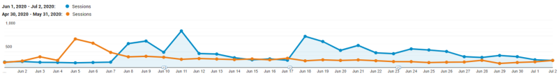 Compared to the preceding 90 days stretching back to early January 2020, tracking in Google Analytics for the website overall – regardless of traffic source – showed: